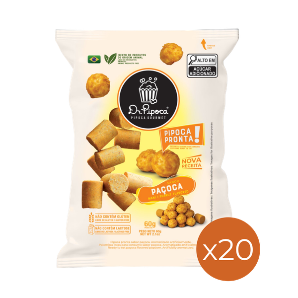 🥜 Combo com 20 Pipocas Gourmet Dr. Pipoca – Paçoca com Paçoquita (60g)